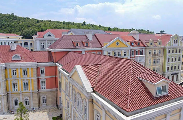 如此美麗的建筑群,在屋面裝飾上怎么能缺少業(yè)內(nèi)知名的榮冠陶瓦為其增添色彩。